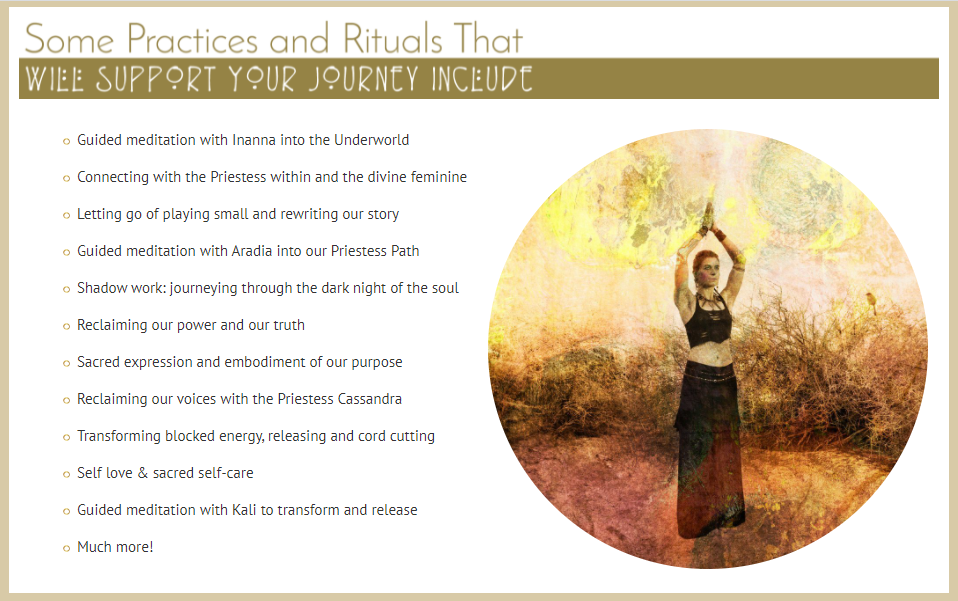 This online self study journey created by Ara of The Goddess Circle is a powerful reclaiming of your own deep truth, igniting the fires of alchemy within to bring your own unique Inner Priestess path into the world.